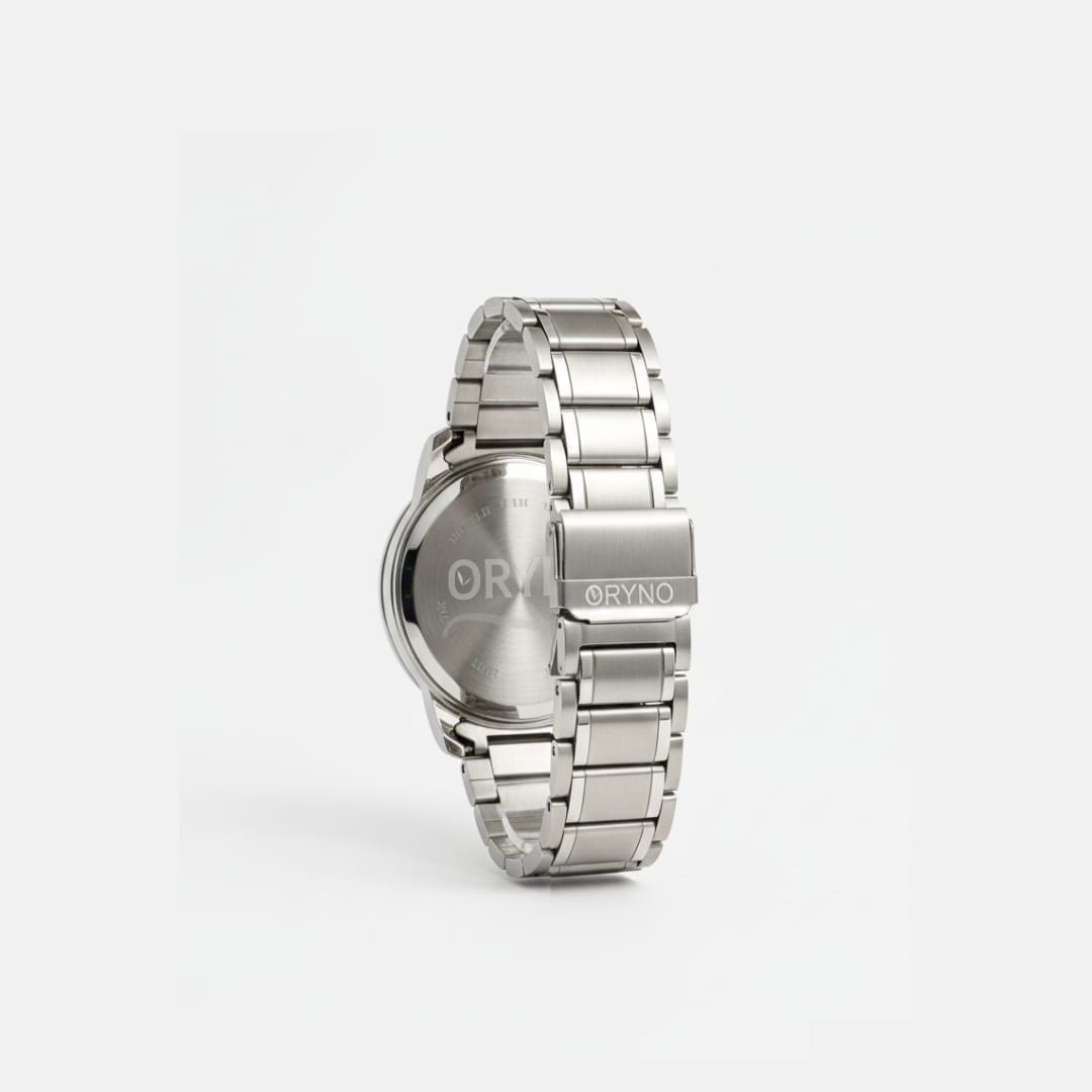 Crafted in polished stainless steel, the case and bracelet offer durability with a sleek, premium finish. The minimalist markers and slim hands enhance clarity while preserving a clean, high-end aesthetic. Designed for those who appreciate distinctive style, it transitions effortlessly from daywear to formal occasions.
